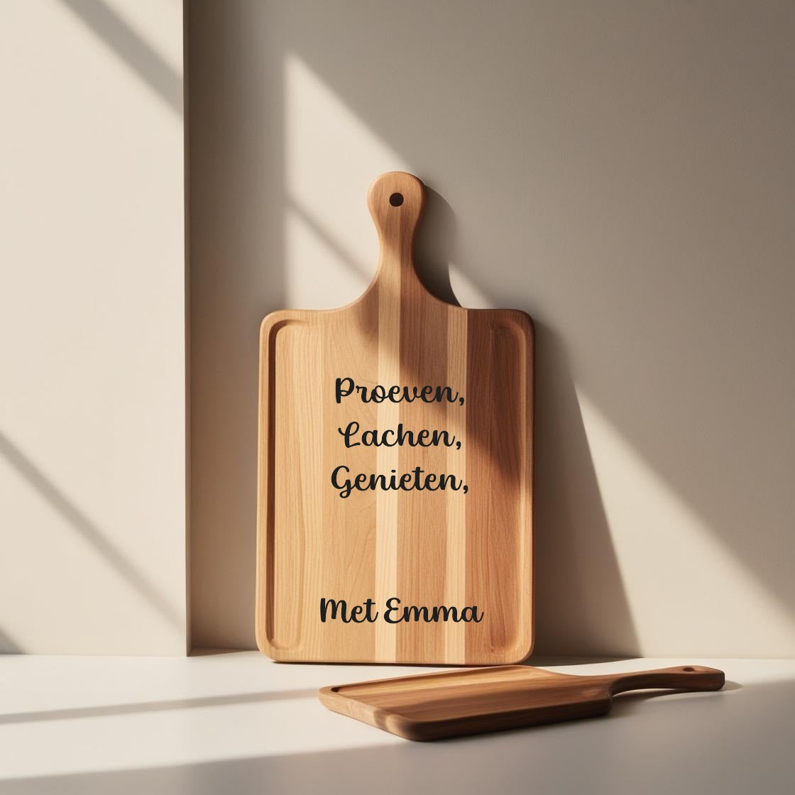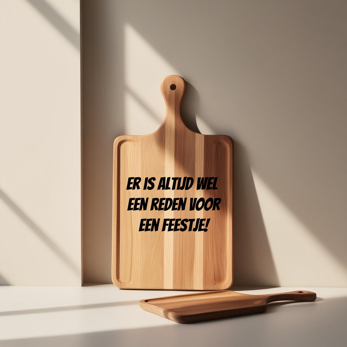 Niet bedoeld om op te snijden aan de bedrukte zijde, wél om mee te pronken. Gebruik de achterkant van de plank om op te snijden of te serveren: zo blijft de voorzijde mooi én decoratief.